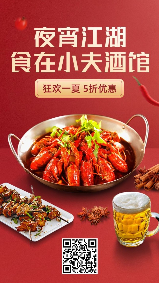 美食餐饮龙虾烧烤手机海报